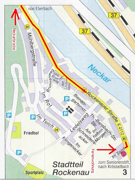 Am Kreisel fahren sie über die Neckarbrücke und biegen anschliesend nach links Richtung Rockenau.